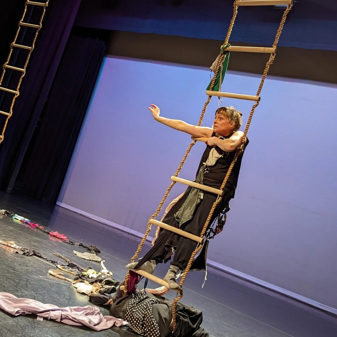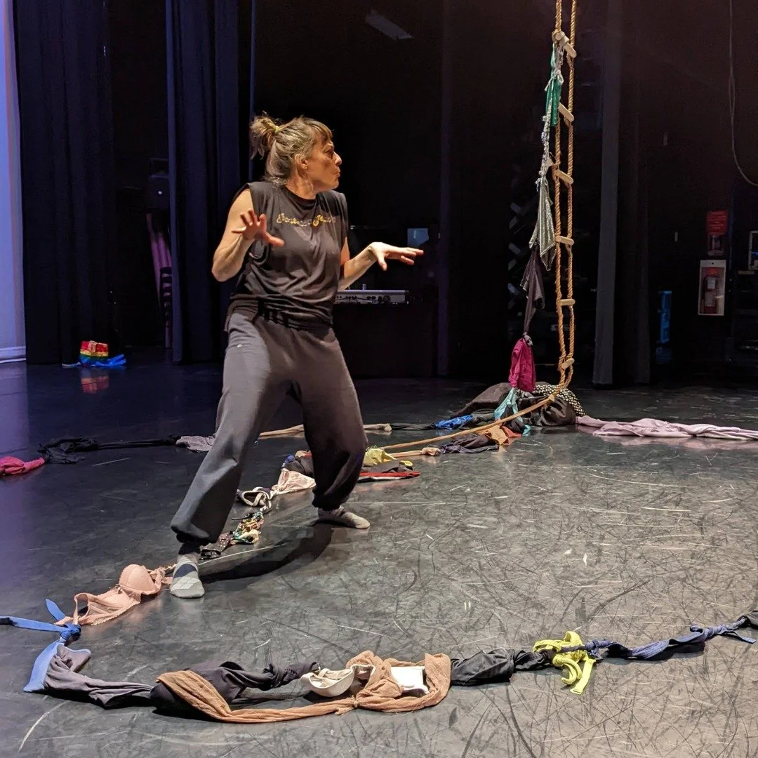 On Saturday night, Tara performed Body Parts to an extremely enthusiastic audience "Finally a dancer to whom I can relate! Body Parts shares the story we all know but never tell, the story of our own bodies. I was enchanted by her honesty, moved by her vulnerability, and delighted by her profound absurdity." Audience member TCP in rehearsal at Mary Irwin Theatre at the Rotary Centre for the Arts, Kelowna.