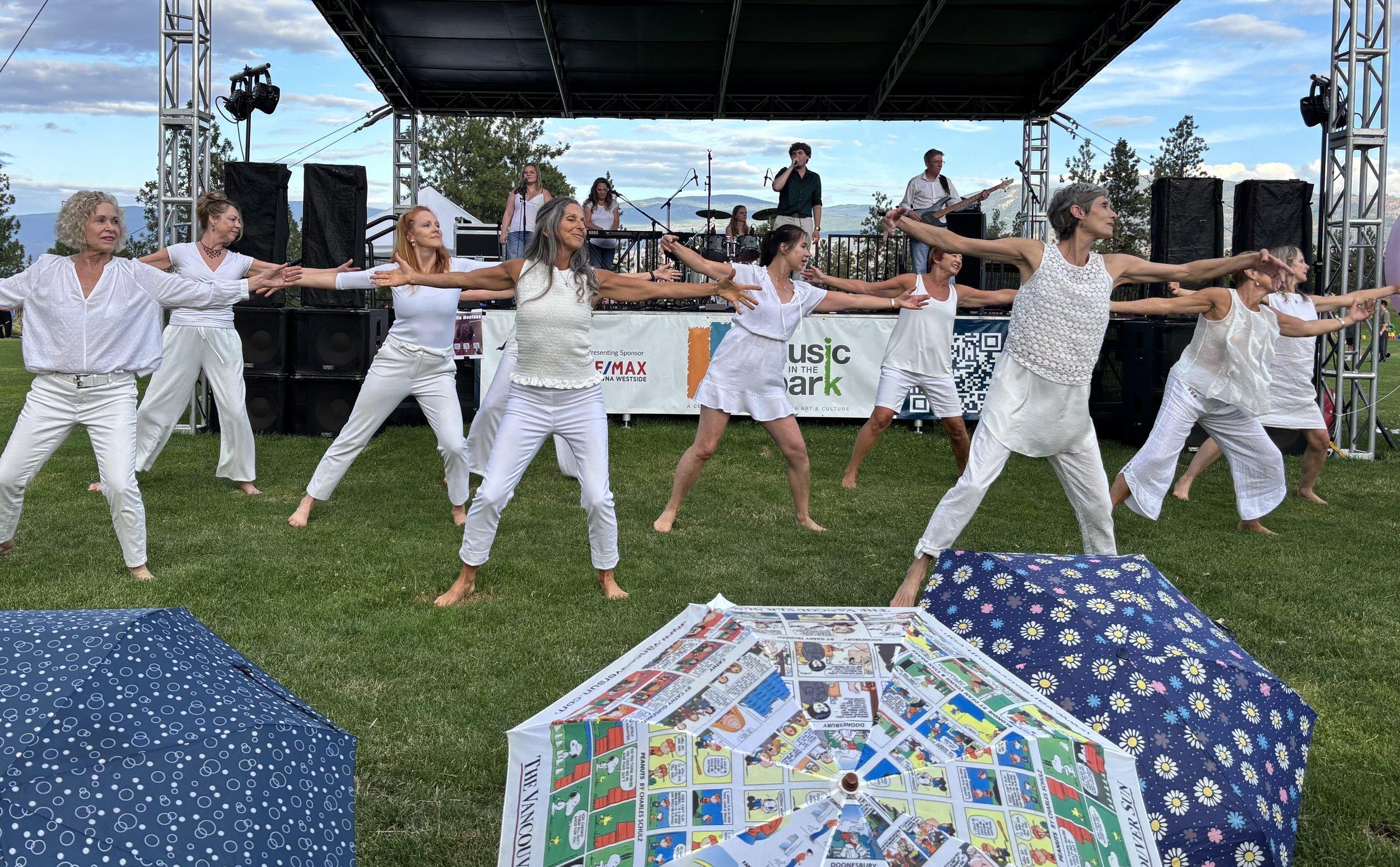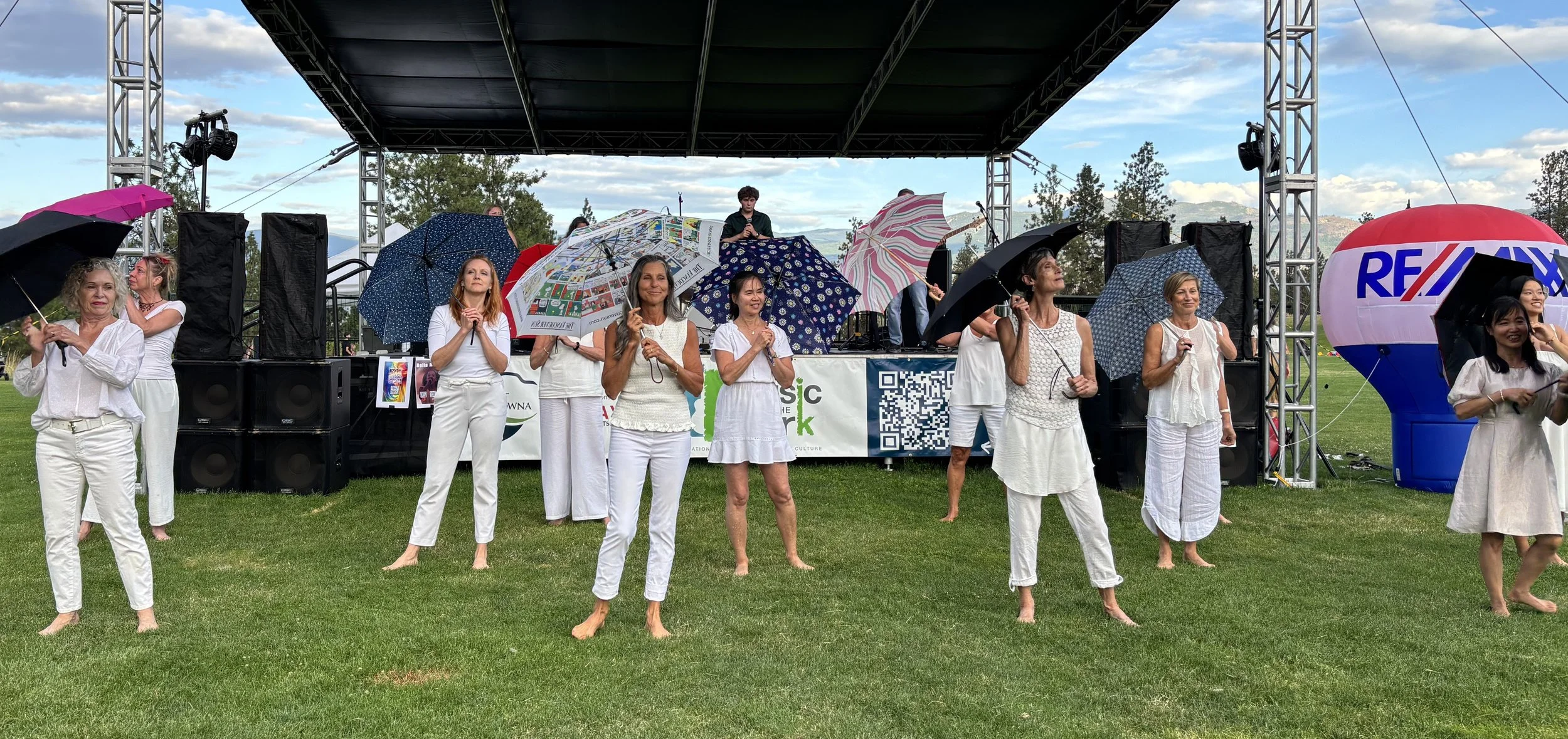 It was another beautiful time dancing together at Music in the Park to Lucas Wentworth's inspiring song In the Rain. All 12 of us were thrilled to move to the music before a wonderful audience on a lovely summer evening in the Okanagan Valley. We're grateful to the United Way BC / Southern Interior for a Local Love grant that supports these essential community initiatives, bringing joy and connection to all who participate! - Claudia Moore