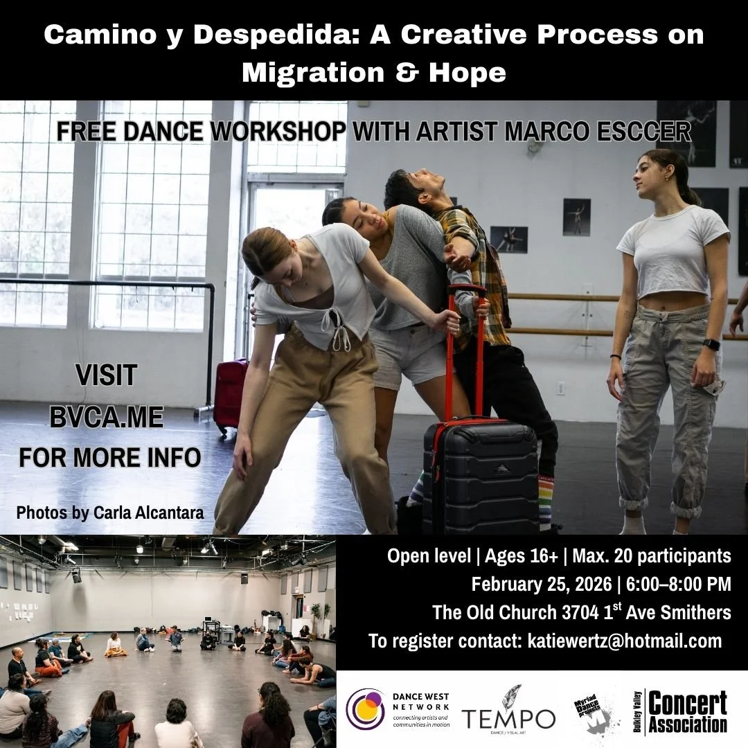 Dance Artist Marco Esccer - a queer Mexican dance artist, Dance Movement Therapist, and TEMPO Co-Director - will lead a creative process workshop offering an opportunity to connect with the ideas, practices, and questions behind Camino y Despedida, the interdisciplinary performance touring with TEMPO Dance & Visual Art. The workshop invites participants of all bodies and experience levels into an embodied exploration of migration, hope, change, and belonging. Using guided movement, improvisation, writing, and collective reflection, participants will engage with the symbol of the suitcase and the figure of the traveller as entry points into personal and shared stories.