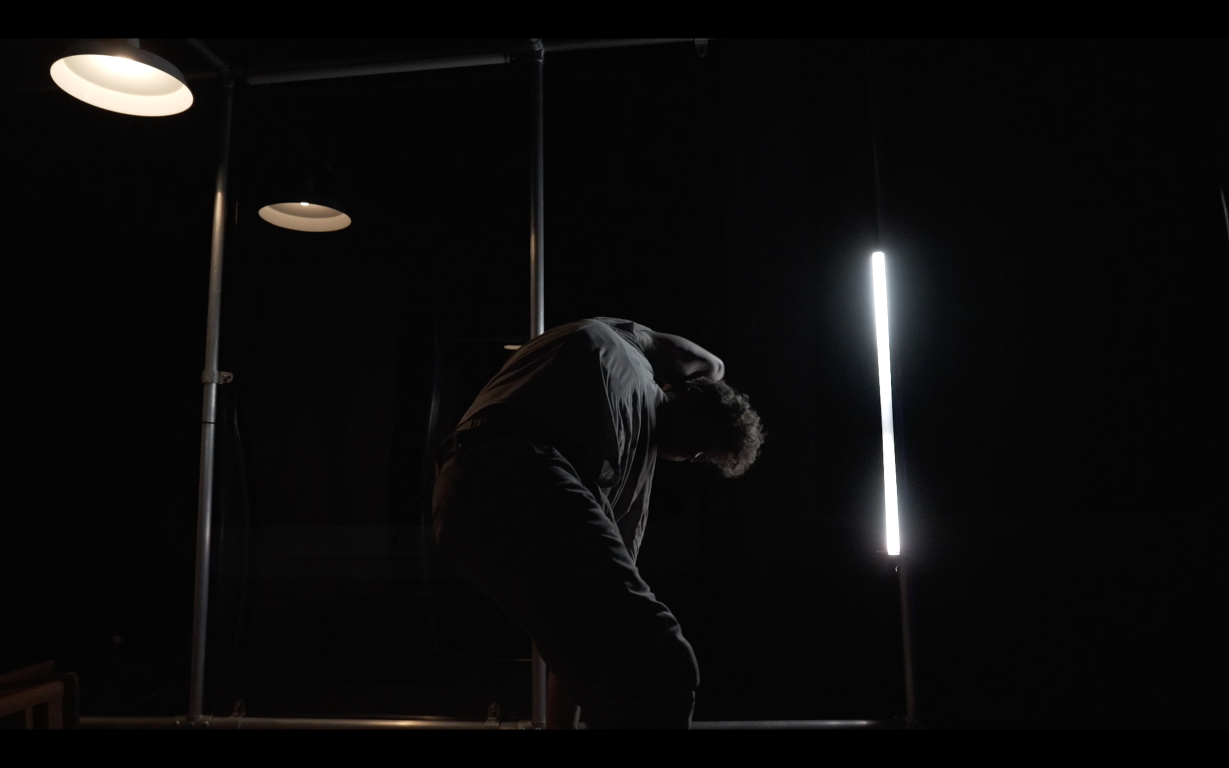 Brimming is a solo investigating the body as a container: a rigid frame holding in and concealing its stored inner contents. The piece imagines the body as a hollow interior space continuously shaped and reshaped, filled and emptied, and inhabited through different states. A performer trapped inside his own form, the dance is a meeting of both the seen and unseen – the invisible contents that slosh up against the sides, pushing against the outer surface from beneath, and occasionally leaking under its pressure. Brimming explores this shape we are in, how it holds us, and what might eventually spill out when the walls begin to bend. Brimming’s next iteration imagines a live hybrid performance that utilizes live-feed cameras in tandem with a live in-situ performance, allowing viewers to physically attend and approach the scene while additional camera angles are projected live on screens seen on the outer edge of the space.