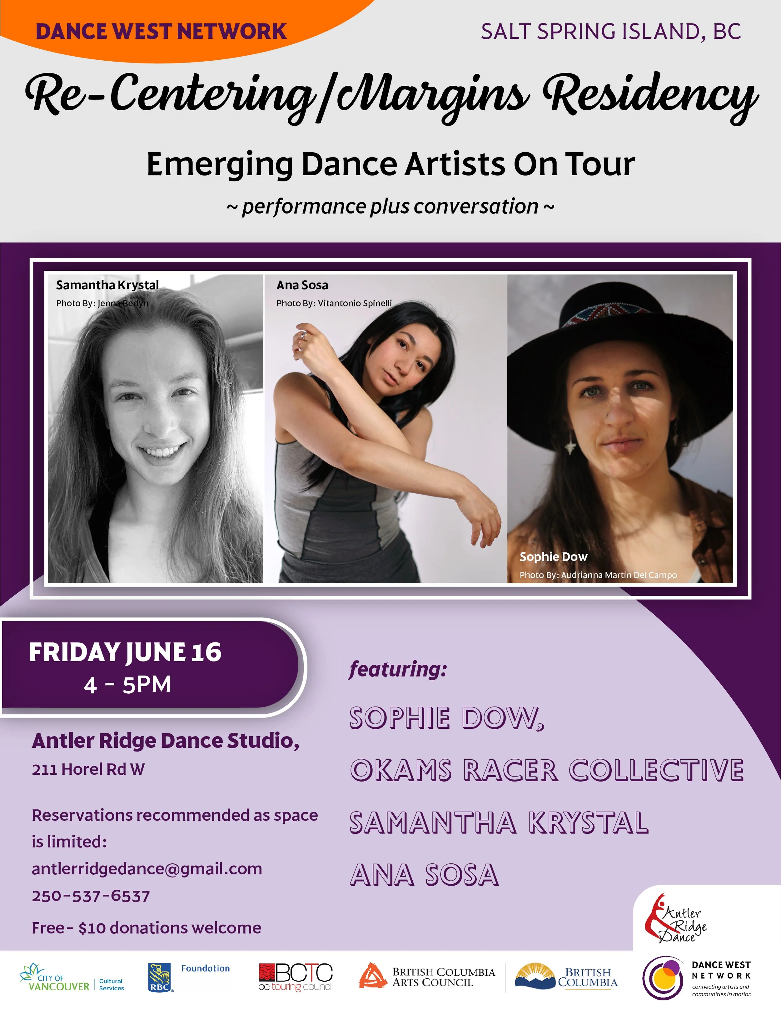 Performance plus conversation with Re-Centering/Margins Creative Residency Artists Sophie Dow, Okams Racer Collective, Samantah Krystal and Ana Sosa